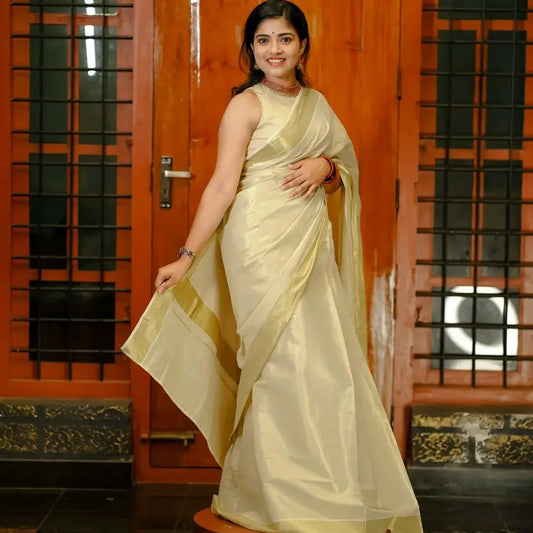 Golden Grace Kerala Cotton Tissue Kasavu Saree